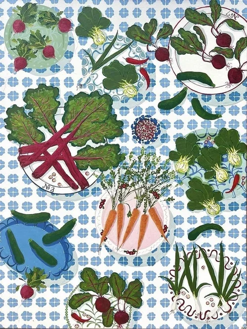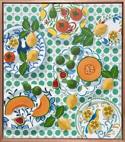 Emma Sheehan completed a Masters Degree in Curating at Sydney University in 2018 and later attained a Graduate Certificate in Interior Design and Decoration at the Inchbold School of Design in London in 2021. Emma also shares an appreciation for colour, pattern, textiles and ceramics with her Mother, Sister and Aunt, her mother has instilled in her a love of cooking and entertaining, her sister works in interiors with Anna Spiro and her aunt is a purveyor of beautiful homewares in Woollahra. Creativity runs in this family. Now based in Jugiong NSW, Emma paints her tablescapes from the heart, capturing the energy of entertaining with playfulness and joy. Emma is known for her wild harmony of colours, intuitive colour combinations and mindful compositions.