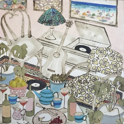 Emerging artist Laura Newbury’s happy place is the dining room table, reflective in her delightful artworks. She grew up on a vineyard in WA’s Great Southern region, and a career in hospitality has since taken her all over the world. Well versed in the joy, passion, love and chaos that can accompany meal times, Laura seeks to capture some of that emotion and energy in her art practice.