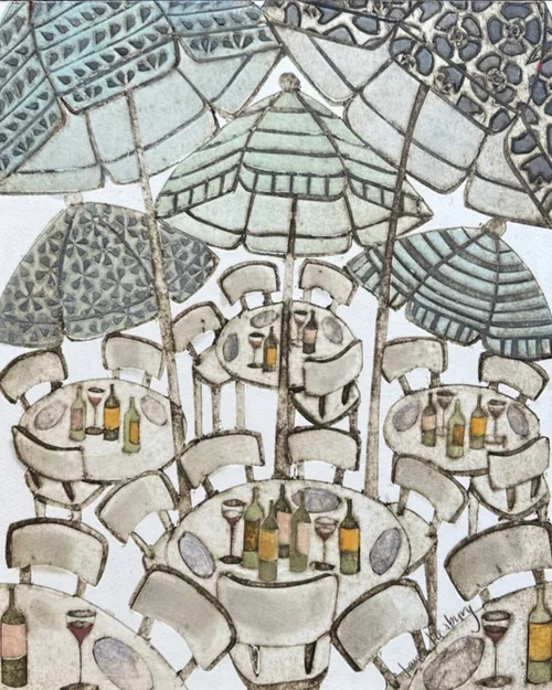 A print maker who has been honing her craft since she first picked up a lino-cutting tool at high school; Laura’s work reflects the various moods of dining encounters and other domestic scenes. She’s particularly interested in the things that are left behind after a meal shared: not just the empty bottles and the food stains, but the happy memories and the relationships forged and fortified. Laura’s hand-coloured collographs combine a whimsy, understated spirit of hospitality, as well as declaring her penchant for furniture and floor rugs. She has participated in several group exhibitions in Western Australia, Victoria and the ACT. She is based in Fremantle, and loves to eat.