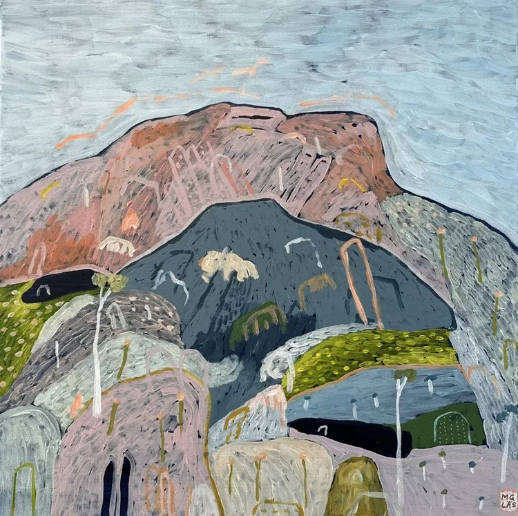 Misa Gelin draws inspiration from her journeys across the countryside with her trusty dog in tow. Misa’s paintings reflect both present memories and past adventures and are imbued with a secret visual language. Using her brushes until they are nearly worn out, Misa paints with both intensity and gentleness, allowing her strokes to intuitively ebb and flow across the canvas whilst capturing texture. Painting is not just a creative pursuit but a way of life, a harmonious rhythm recording the beauty of her surroundings and the richness of life itself.