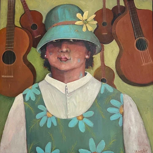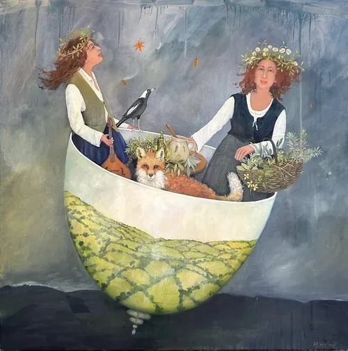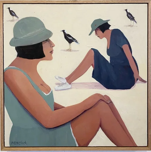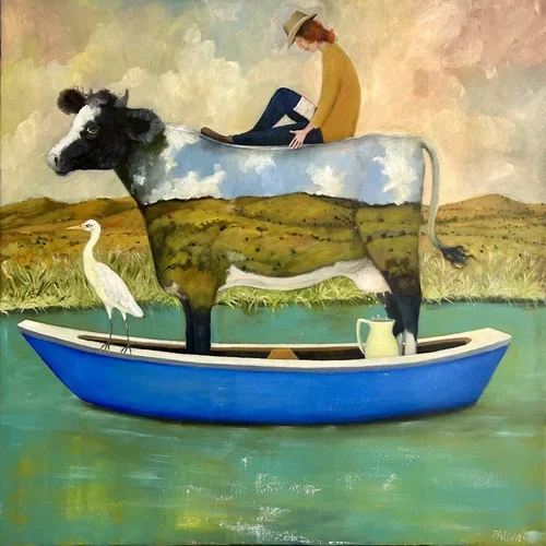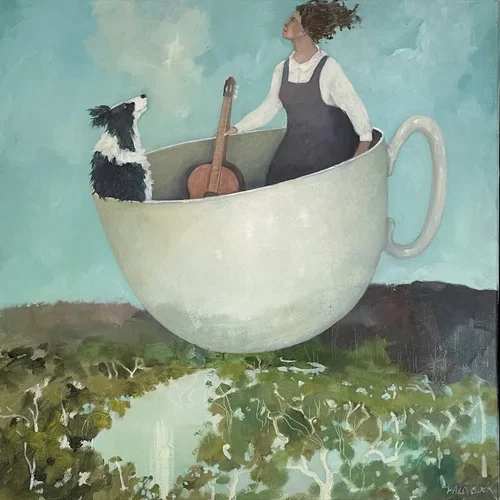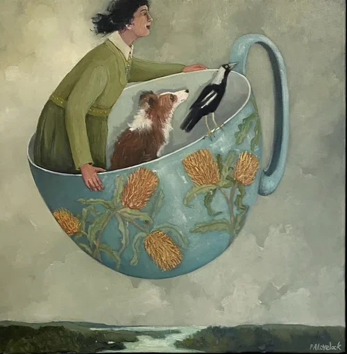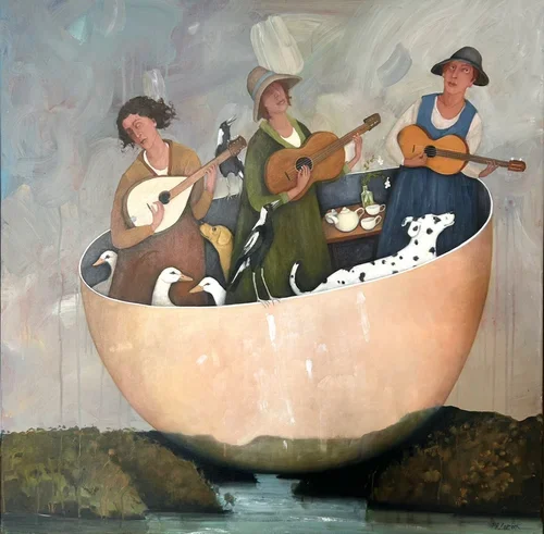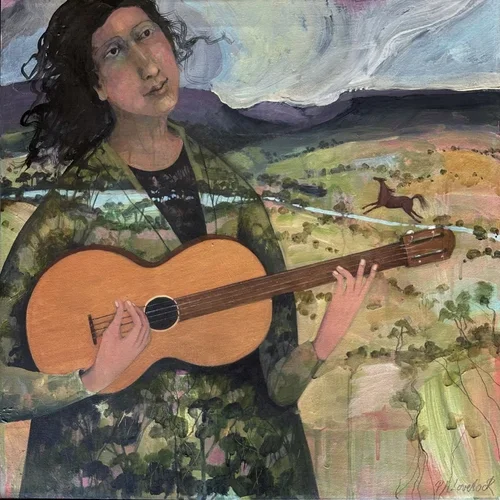 Penny Lovelock is a figurative and landscape artist who draws on her background in illustration, weaving an imagined narrative into her whimsical works. A recurring theme of animals, music, women and Mother Earth run through her quirky paintings. Penny frequently walks and cycles in the Budawangs and surrounds and paints and draws plein air. After losing her home in the Black Summer bushfires in 2019, she has used art as her therapy, producing many cathartic paintings which share her emotional response to the flora and fauna lost, her latest paintings are about regrowth and new beginnings, both for Penny and the landscape she loves. Penny loves working from her home studio in Lake Conjola, NSW.