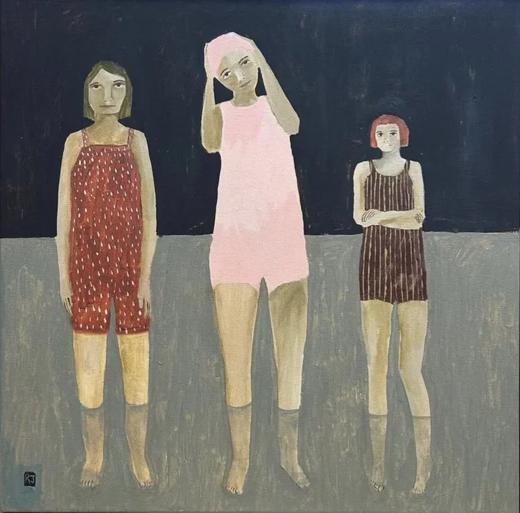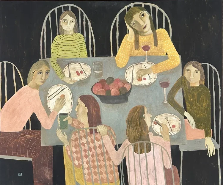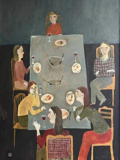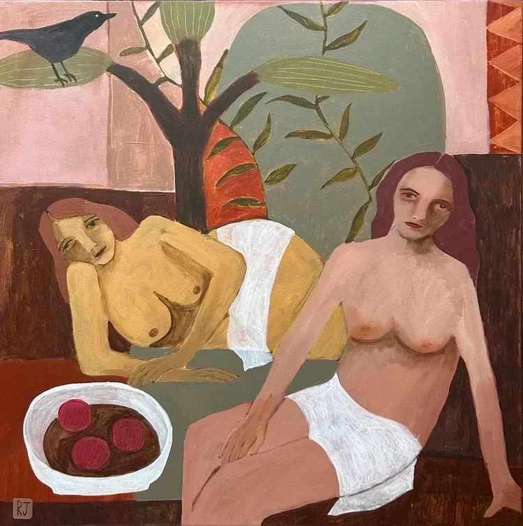 Rebecca James is an artist and writer based in Warrnambool, Victoria. Rebecca attempts to capture the moments that make up a life. The first cup of tea of the day, the warmth of a wood fire on a cold day, conversations with friends, the beauty of a vase of flowers or a bowl of fruit. She paints with a sense of appreciation for the beauty and chaos of humanity. Her paintings encourage the viewer to pause for a moment and consider the wonder of the people and objects within, she invites us into the narrative of the painting, to interpret it through the lens of our own experiences.