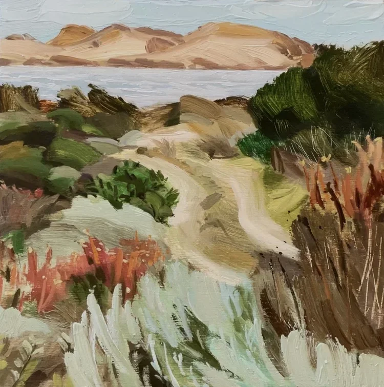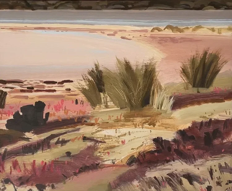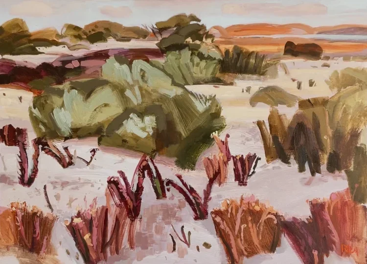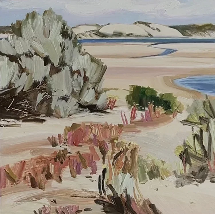 After studying Art and Design in Fremantle, Suzie Riley returned to her home state of South Australia. She now lives on Bunganditj country in the village of Robe. Seeking the pulse and energy of real experience, living and working on the Coast is key to Riley’s connection to the landscape. The colours of the earth, the sea and coastal vegetation have left an imprint that has become part of her subconscious narrative.
